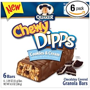 Product Description : Amazon.com Product Description : Snack time never tasted so good. Enjoy the toasted oats you love with the cookies & cream flavor you crave, covered in a creamy chocolatey coating. Give in and enjoy the goodness of your favorite flavors.Quaker Chewy? Granola Bars are a delicious, wholesome snack for the whole family. Enjoy great tasting ingredients combinedwith the goodness of Quaker Oats. You can't go wrong with your favorite Quaker Chewy? Granola Bar - but why pick just one?You can't go wrong with your favorite Quaker Chewy? Granola Bars